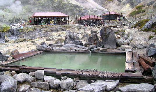 Q.玉川温泉の古い写真で露天風呂が写っていましたが、どのあたりにあったのでしょうか。