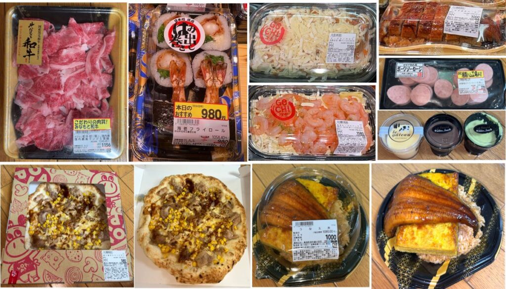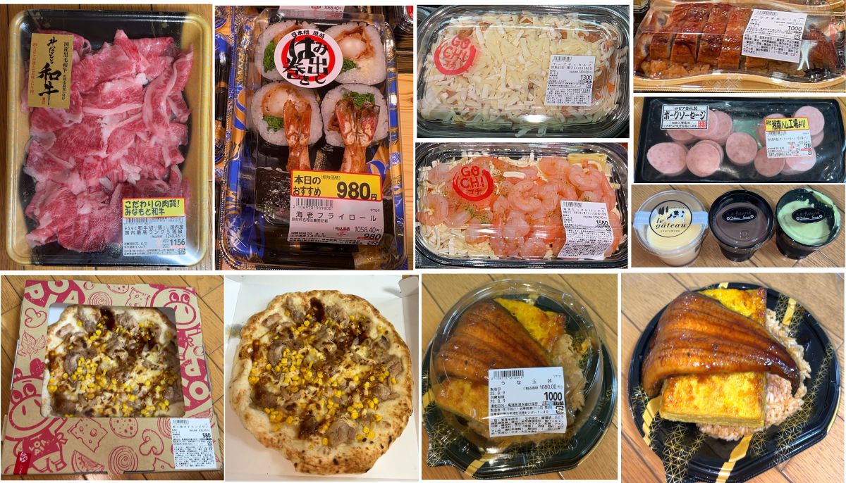 惣菜・米飯では「メガ盛りパック」,「テリヤキチキン」,「やみつき肉餃子」,「うなぎ姿寿司」,「キンパ」,「小林さんちのおにぎり」,「大きな皮のせ焼売」,「小林さんちのナポリタン超絶ミートソース」,「ロースカツ重」,「モンSTARバーガー」,「にぎり寿司」,「でっかいチキンカツ」,「キャベツ焼き」,「ロピア肉団子」,「きゃべつメンチカツ」,