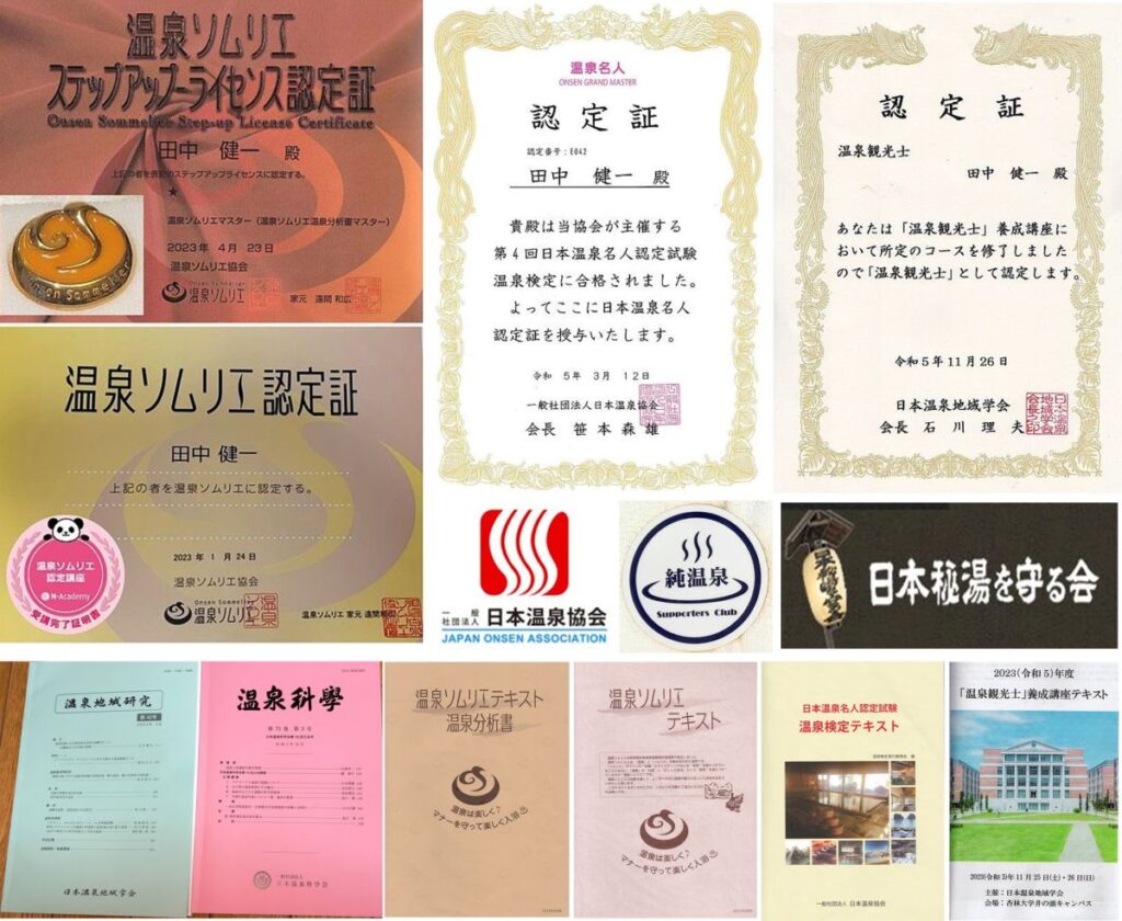 2024/02/03温泉の資格取得。温泉観光士,温泉名人検定,温泉ソムリエ,温泉ソムリエマスターの違い。日本温泉地域学会,日本温泉科学会,日本温泉協会