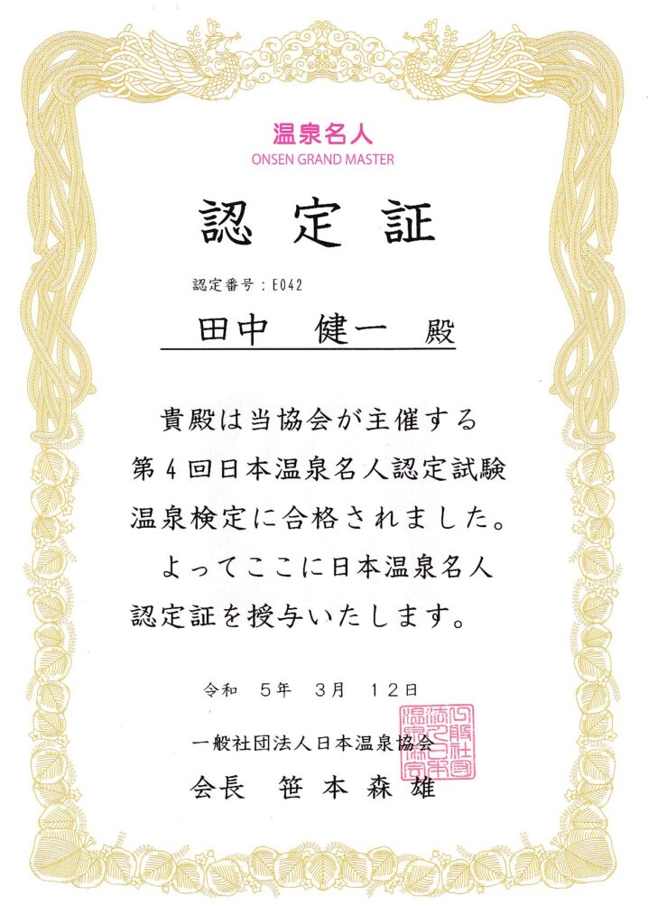 ・日本温泉協会 温泉名人認定(2023年3月)